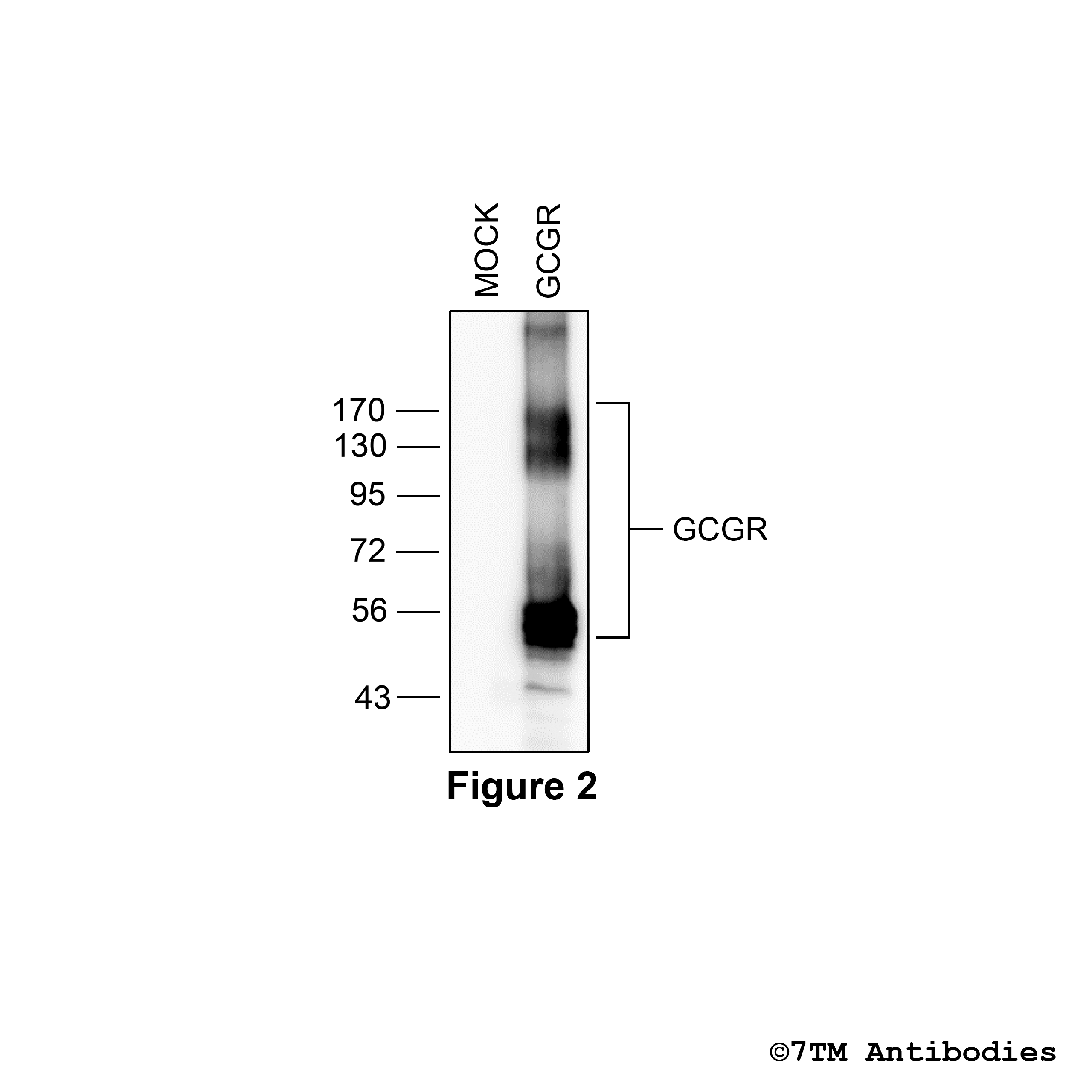 The GCGR antibody is directed against the distal end of the carboxyl-terminal tail of mouse, rat and human GCGR. It can be used to detect total GCGR receptors in Western blots independent of phosphorylation. The GCGR antibody can also be used to isolate and enrich GCGRreceptors from brain lysates. It also detects GCGR in cultured cells and tissue sections by immunohistochemistry.
