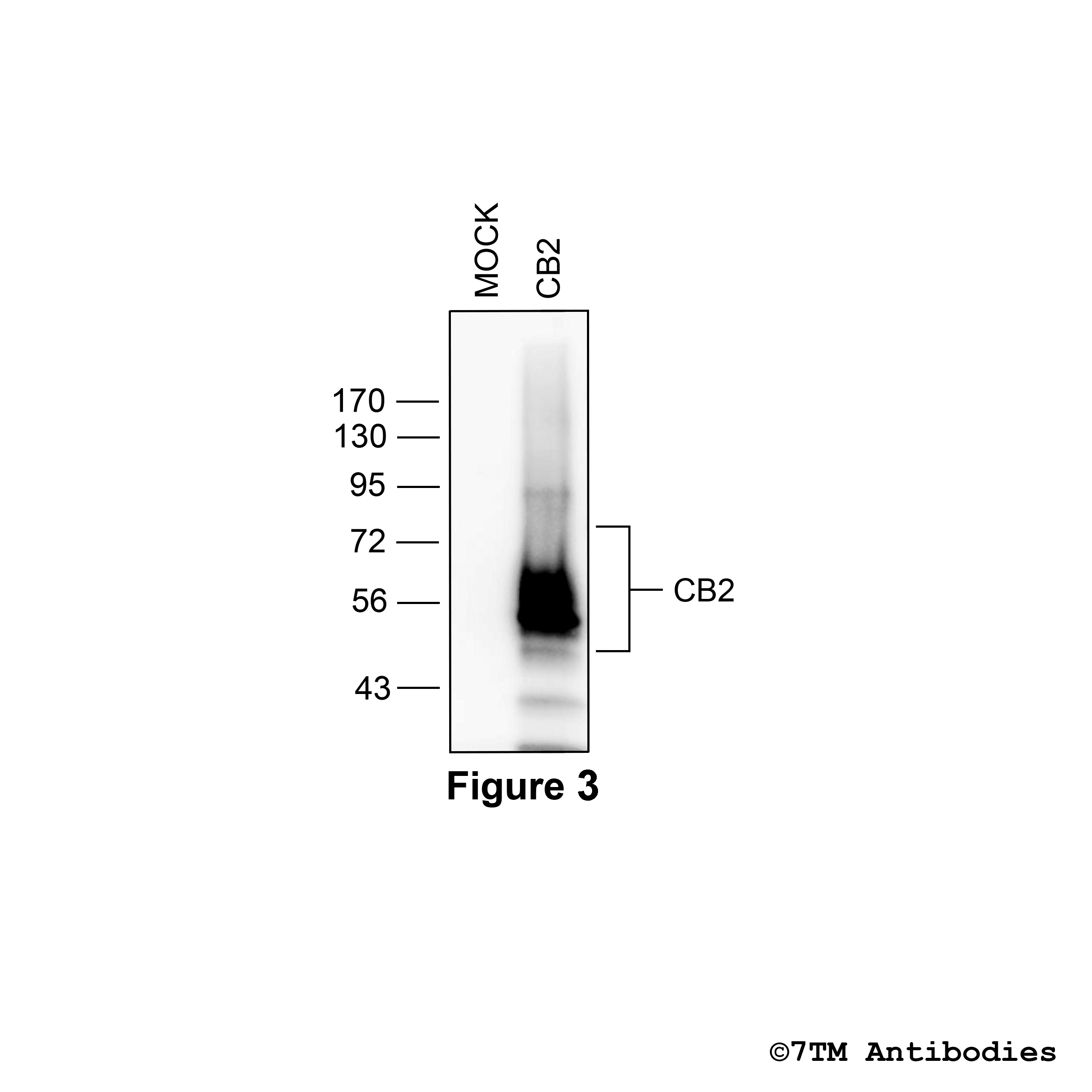 The non-phospho-CB2 receptor antibody is directed against the distal end of the carboxyl-terminal tail of human CB2. It can be used to detect total CB2 receptors in Western blots independent of phosphorylation. The CB2 antibody can also be used to isolate and enrich CB2 receptors from tissue lysates. It also detects CB2 in cultured cells and tissue sections by immunohistochemistry.